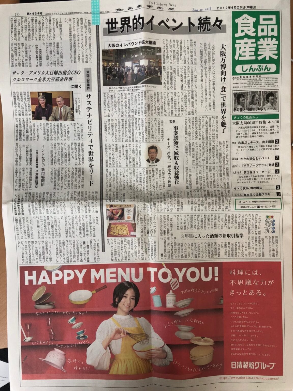 Global media has followed these seminars. In Japan, a food news industry paper covered the story on its front page with the headline, “Leading the World with Sustainability” [see image]. In addition, the event was featured in an online story [https://www.ssnp.co.jp/news/soy/2019/06/2019-0603-1824-14.html].