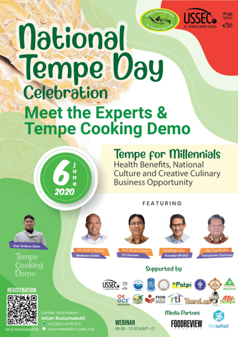 This year, despite the COVID-19 pandemic, USSEC continued its collaboration with the Indonesian Tempe Forum (ITF), the National Union of Tempe, Tofu Producers Cooperative (GAKOPTINDO), and other Indonesian tempe stakeholders to celebrate the occasion in the form of a virtual Talk Show and Tempe Cooking Demo.