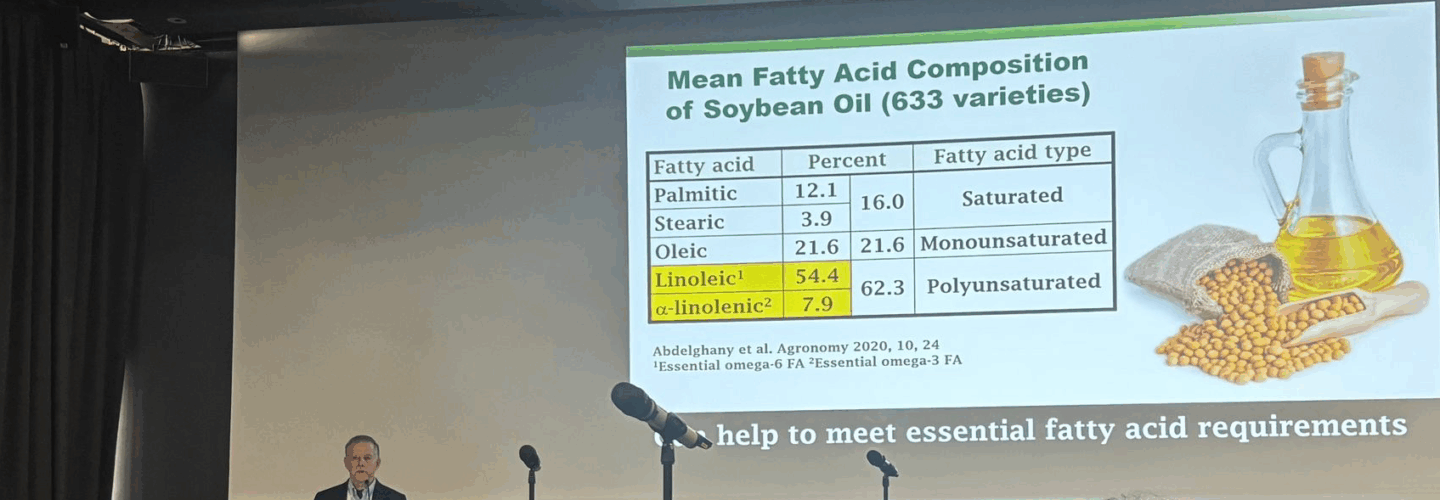 An engaged crowd gathered to hear how agriculture delivers nutrients to populations by serving as the primary source of food that provides vitamins, minerals, and macronutrients required for human health. Tarik Eluri, Manager of Sustainability, USSEC, shared an overview of the sustainability practices and innovation that have contributed to historical increases in U.S. soybean yields. U.S. soybean farmers utilize precision agriculture, GMO soybeans that are resistant to pests, herbicides, and environmental stress, and no-till farming, which allows them to produce more on the same amount of land. Mark Messina, PhD, MS, Director of Nutrition Science and Research, SNI Global, outlined the attributes of soy that make it a potential contribution to the global food supply, including its high-quality protein, fat content (omega-6 and omega-3), caloric density, abundant supply, affordability, nitrogen-fixing capabilities, sustainable production, and versatility1 .