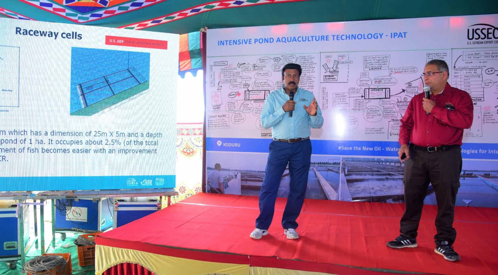 Popularization of the technology will be planned in three different stages, USSEC Deputy Regional Lead – ASC Vijay Anand said. The first phase is the completion of construction and conducting the field day so the industry can see the system before water is filled into the pond. The second stage for information sharing will take place while fish cultivation and feeding is in operation. The third and final event would be at harvest where all can physically see the performance of the system and learn about the math on return on investment (ROI).