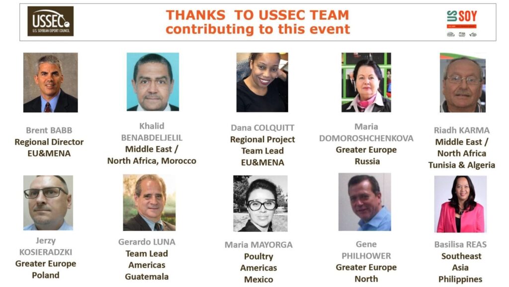 “This is the second large virtual event organized by USSEC Europe this year and, as organizers, the team has learned a lot. Initially dedicated to a handful of U.S. soy customers from the EU region, once advertised, the USSEC Feed Manufacturing Training attracted attention from international professionals and we received inquiries for participation from all over,” says Dr. Iani Chihaia, USSEC consultant and event organizer. “Besides the high level of interest expressed by professionals from the international feed industry, the event became an excellent means to promote the quality of U.S. Soy. As such, we allowed soy customers from all over the world to attend and this hailed a success which U.S. soy industry should consider following through similar activities.”