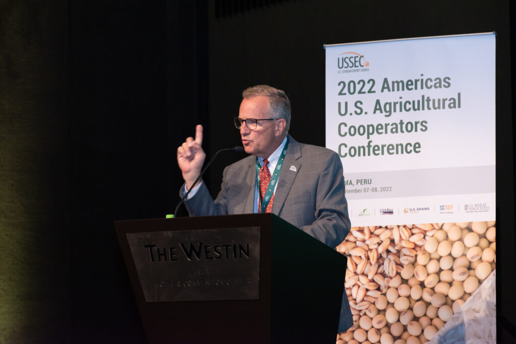 The 2022 Americas U.S. Agricultural Cooperators Conference, held in Lima, Peru, on September 7-8, marked another successful year for the United States Soybean Export Council (USSEC), U.S. Soy, and fellow U.S. Agricultural Cooperators U.S. Grains Council, U.S. Wheat Associates, and USA Rice Federation. This event brought together over a hundred of the Americas region’s most representative animal, feed, and food industry members to celebrate a continued and successful partnership with American farmers and exporters, which is increasingly based on shared values and plays a critical role in navigating these ever-changing times.