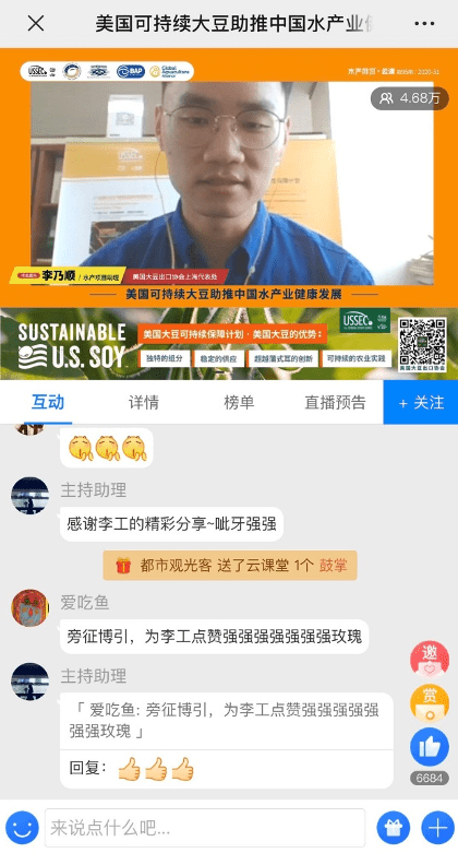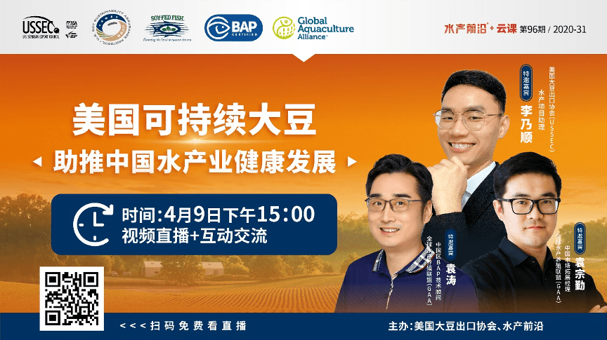 On April 9, USSEC’s China Aquaculture Program conducted its first webinar on the promotion of the U.S. Soy Sustainability Assurance Protocol (SSAP) and Best Aquaculture Practices (BAP). The team rented the platform from Fishfirst, one of the most influential aquaculture magazines in the country, to live-webcast this seminar. Statistics showed that the total page-viewer number reached over 45,000 while the number of participants to the webinar was over 1,000 (from Fishfirst). At the webinar, three speakers, including USSEC consultant David Li and the Global Aquaculture Aliance’s (GAA) Kevin Yuan and Jeff Yuan, gave presentations: introducing SSAP, the application procedures for BAP certification, and reviewing technical details on BAP requirements. Towards the end of the webinar, speakers answered participants’ questions and feedback from participants showed the satisfactory rate as very high. However, turn-in rate of surveys was lower than anticipated because previous Fishfirst customers had not asked the platform to provide this service, which resulted in poor webpage design for the survey. At the end of the webinar, only about 20 surveys were completed and turned in. USSEC talked to Fishfirst about this issue and Fishfirst promised to improve the survey capabilities for the next USSEC webinar.