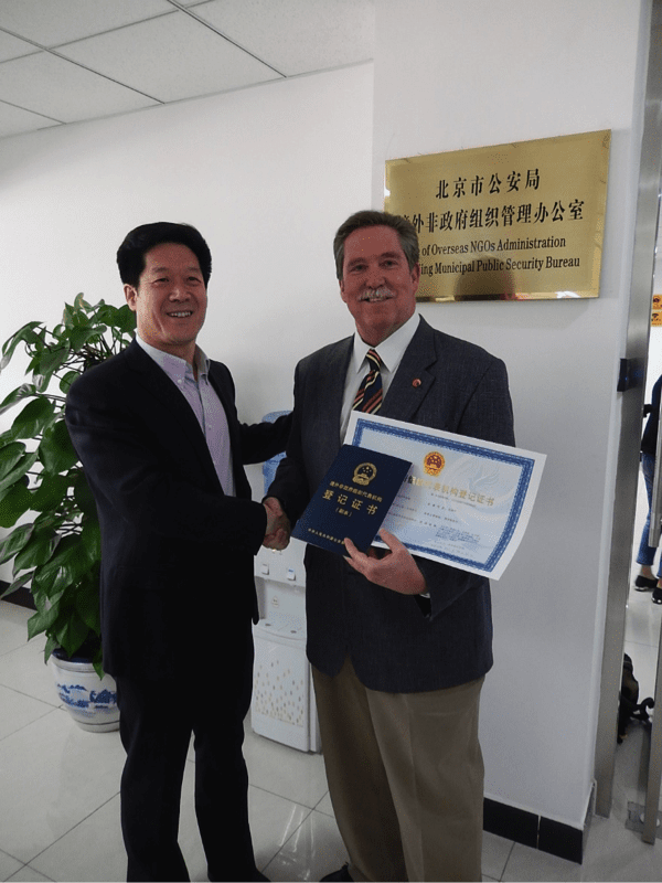 Under the foreign NGO law of China, foreign NGOs are required to register with the police for their existing representative offices to be officially recognized as legal entities conducting activities in mainland China.