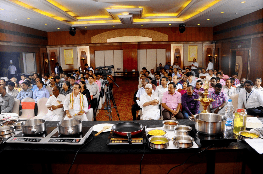 USSEC Director – India Soy Food Program Dr. M. M. Krishna addressed the participants and explained the important features of the soy-based multigrain dal maker in terms of its superior nutrition delivery and affordability besides its preeminent suitability for use as the base food in a variety of region specific food products such as sambar (dal soup with vegetables and spices) and dal with vegetables, in addition to other main dishes, starters and snack products. Mr. Awesh Jain, project head from Ruchi Soya Industries, communicated the unique manufacturing process as well as the rigid quality systems used in production. He also highlighted the market potential for the product, particularly as a source of affordable protein for the bottom of the pyramid population. The soy-based multigrain dal maker received the highest endorsement from a celebrity culinary expert and celebrated chef in Chennai. The head of Ruchi Soya’s sales-promoting company explained distribution arrangements to all the potential users.