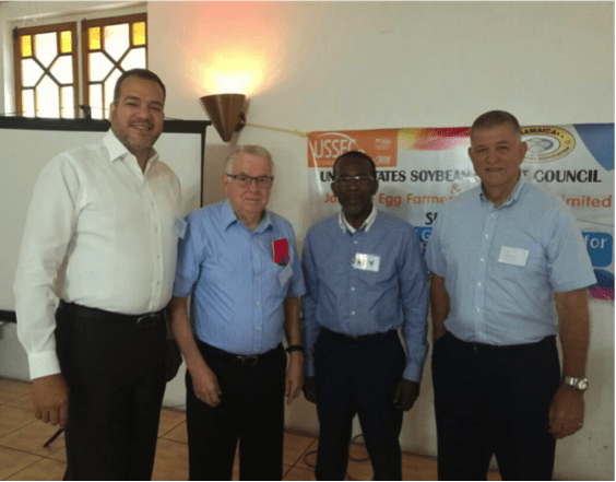 USSEC conducted a seminar on U.S. soybean meal for nutrition and good farm practices for table egg producers in Ocho Rios, Jamaica. The seminar was made up of ten presentations relating to the use of U.S. soybean meal and how it compares with other soybean meals from different origins; feeding programs for laying hens and pullets; the effects of heat stress; formulation with digestible amino acids; the ideal protein ratio in laying hen feeding programs; and other important laying hen topics. The presentations also provided an overview of USSEC and the U.S. soybean sustainability assurance protocol (SSAP).