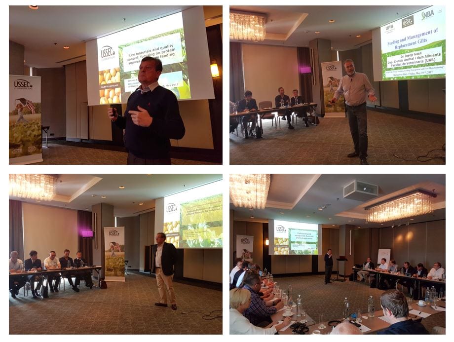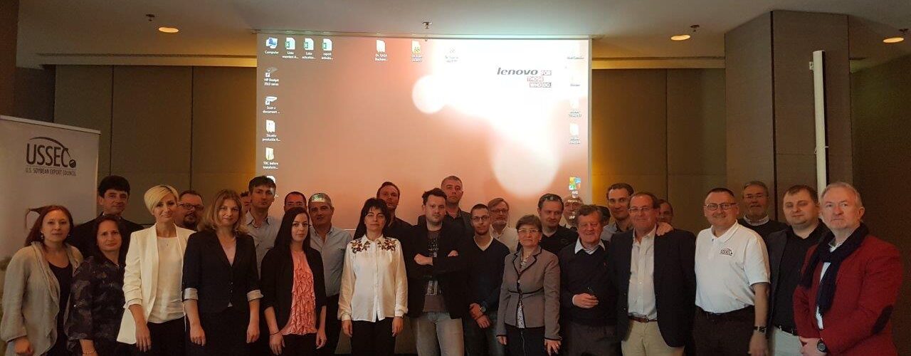 USSEC hosted a swine nutrition, management, and feed manufacturing seminar in in Bucharest, Romania on May 19 for industry delegates from Romanian and Polish key swine companies. Presenters covered key aspects of nutrition and management and did an outstanding job of sharing their expertise. The hit of the seminar was USSEC consultant Dr. Gonzalo Mateos’s presentation on raw materials quality control, focused on protein sources used in swine feeding such as soybean products, rapeseed meal, and sunflower meal. U.S. soy nutritional attributes were emphasized and how this protein meal can answer the growing demand for high quality raw materials.