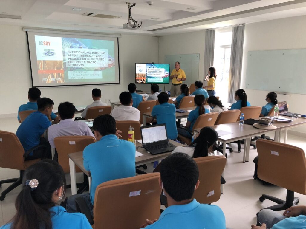 USSEC feed specialist – Southeast Asia Mark Newman, of M.N. Aqua Nutrition Consulting, spoke to aquaculture feedmill formulators and nutrition, production, and executive staff at PILMICO feedmill in Dong Thap, Vietnam on February 17 and 18. USSEC conducted a successful two-day program to discuss key issues related to aquaculture nutrition and on soy use and the U.S. Soy Advantage.