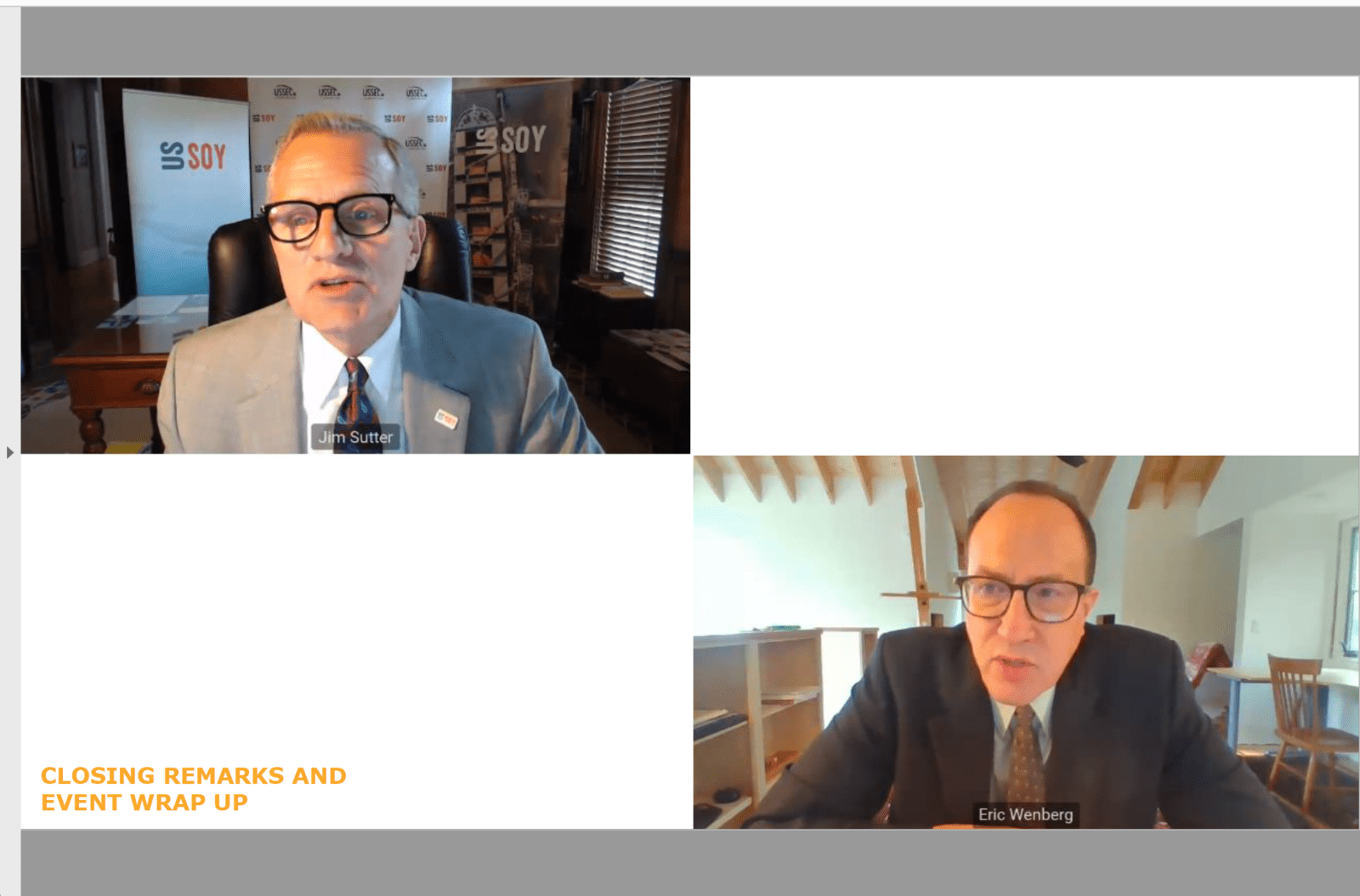 Jim Sutter: That there is a great interest among global consumers of U.S. Soy to learn more and that while virtual meetings are something new and not what we are historically used to, they allow us to get important information to lots of people in a timely and cost efficient manner for both the participants and for USSEC. We had three times the international participants at the 2020 virtual GTE as we did at our largest previous event in 2019 in Chicago.
