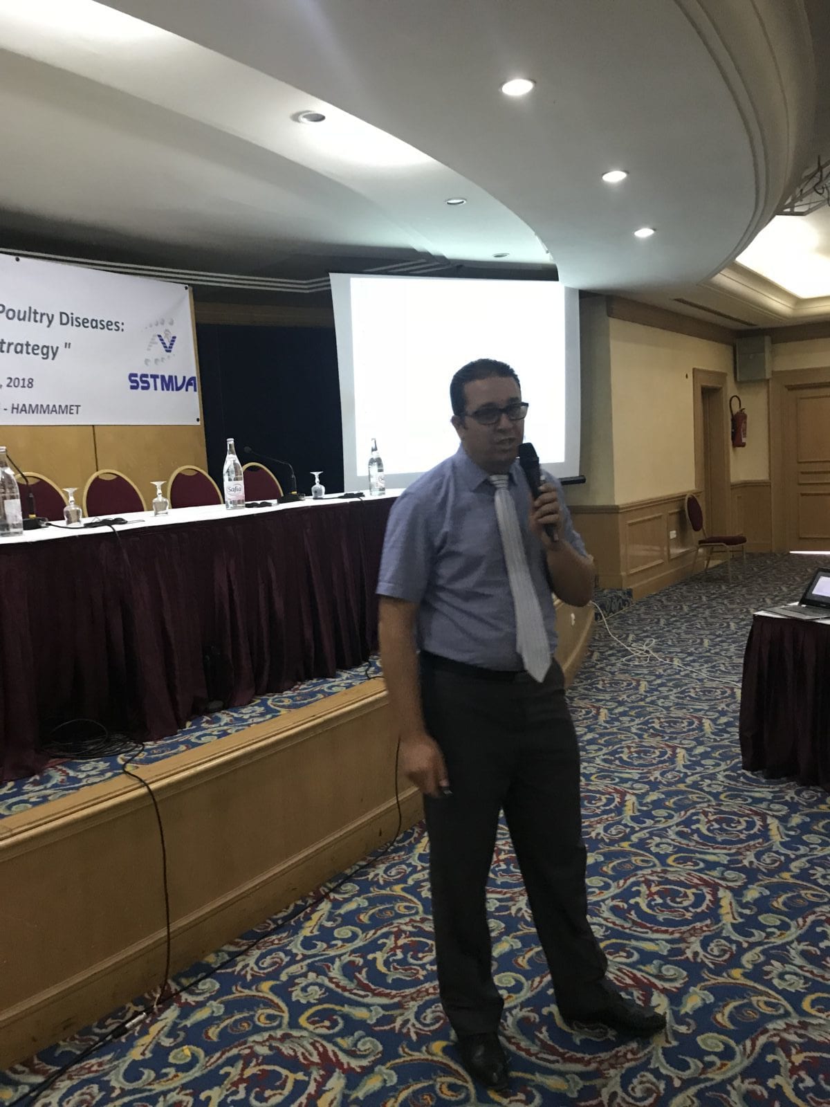Professor Kaboudi gave two presentations: ” Update on Avian Influenza” (presented on behalf of Professor Moncef Bouzouaia) and “Update on Broiler Enteritis.”